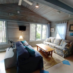 just welcoming neighbors, mini swap library, field days, movie nights, quiet foot traffic. Island views of Onset Bay and the Cape Cod Canal. And, yes, a few young entrepreneurs eager to ferry you to the mainland (just a few hundred feet) or pick up a Sunday paper for you. Now picture yourself summering in this delightful elevated cottage turnkey and easy care, pretty views, a delightful covered patio with porch swing, perennial garden and enclosed outdoor shower room. You are feeling better already, right?